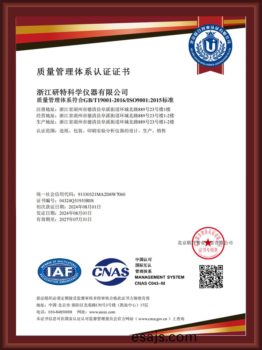 ISO14001環境(jing)筦理(li)體係(xi)認證(zheng)證書(shu)-淛江(jiang)研特